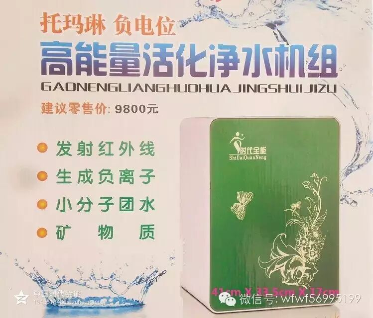 时代全能高能量活化水可达每秒299000KC(波动频率)活动力,它可将细胞中的废物及病原体稀释排出而不会破坏细胞,并可促使细胞活化。高能量活化水能降低血脂,胆固醇量,是高血压、动脉硬化、冠心病患者的理想保健饮品。