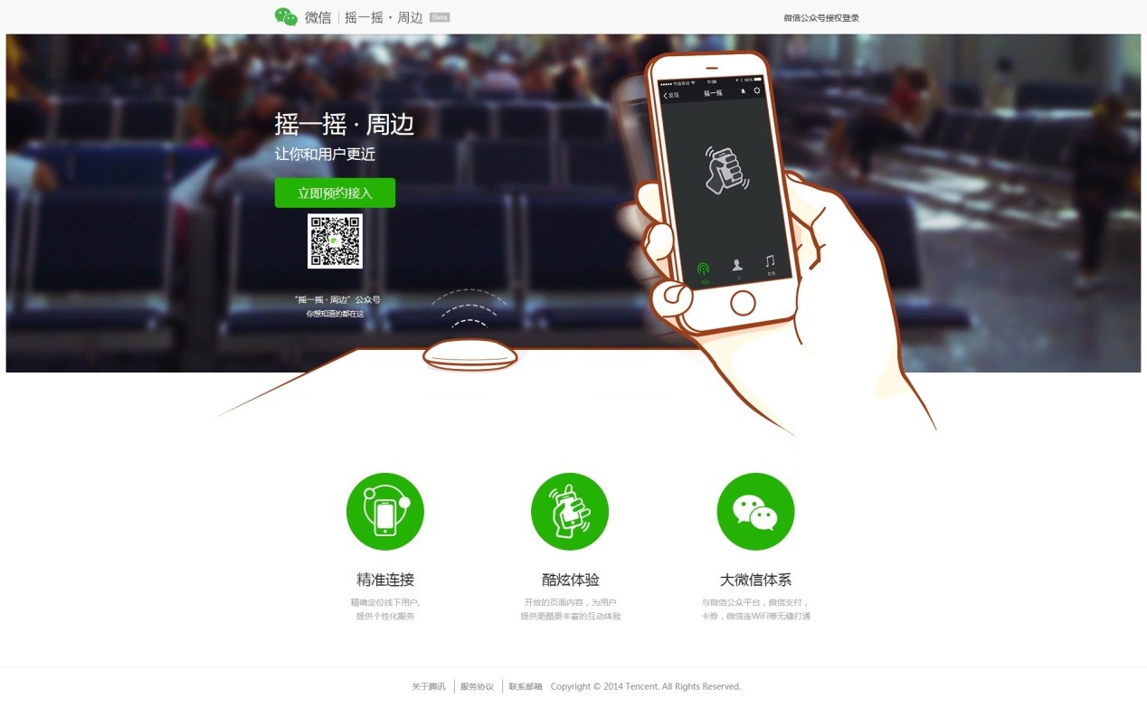 通过“微信连Wi-Fi”和“摇一摇·周边”的两大入口开放自助申请,无疑将更好地连接线上和线下,让商户和用户距离更近。