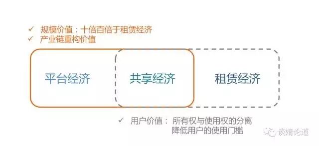 在这里,让我们再来解释三个概念:共享经济和租赁经济,涉及了三种不同的价值——用户价值、体量价值和产业链重构价值。