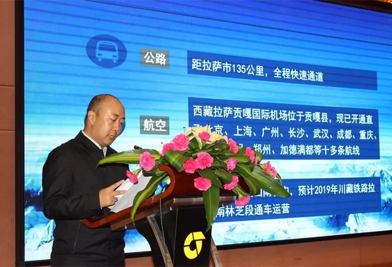 ▲山南市经济合作局副局长马进作招商引资推介路演