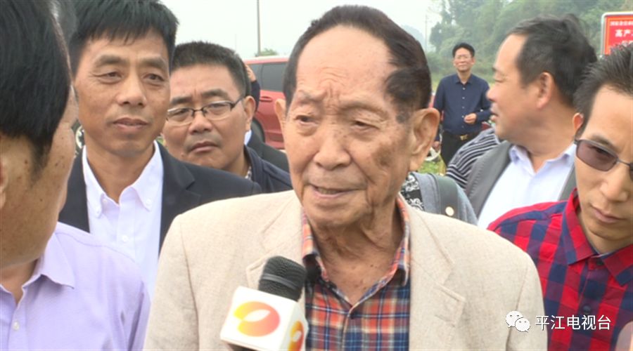 中国工程院院士 袁隆平:700公斤我们在10年前那是妄想,你想1400斤哪里搞得到呢?现在是大面积随随便便就七八百公斤,这块田800公斤(没问题)。