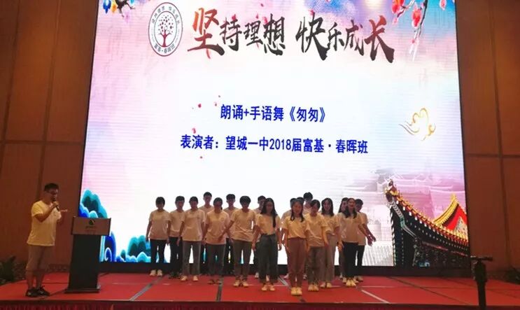 成人礼上,往届富基•春晖班的学长学姐欣然而至,为会议担当志愿者服务,为学弟学妹们树立了“乐奉献•传递爱”的榜样,且与2018届富基•春晖学子欢聚一堂,同歌共舞,为与会者奉献了一台以“爱、感恩和成长”为主题的文艺节目。歌曲《稻香》、朗诵+手语舞《匆匆》、诗歌朗诵《感恩的心》……同学们载歌载舞,深情朗诵,歌颂青春、歌颂梦想、歌颂未来,并向关心、关爱他们成长的爱心人士,表达感激之情,现场气氛温馨感人。全体富基•春晖班学子深情合唱《富基•春晖的日子》,穿越地域和时空将所有春晖班的学子紧紧地联系在一起,春晖大家庭跃然而现,将活动气氛再次推向高潮。