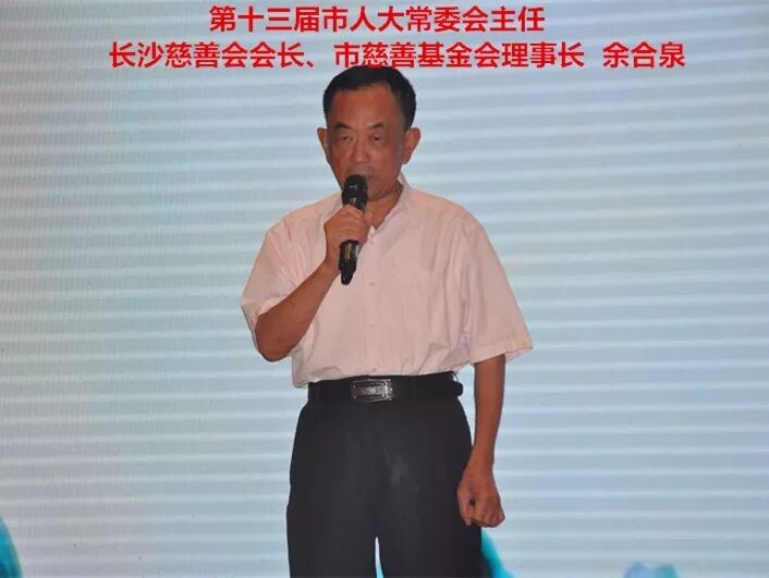 ▲长沙市第十三届人大常委会主任、长沙慈会会长、市慈善基金会理事长余合泉讲话