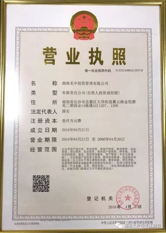 湖南禾中投资管理有限公司经长沙市工商行政管理局批准注册登记,注册资本1000万元,法定代表人路实,是禾中集团旗下分公司。湖南禾中立足湖南,放眼三湘。公司成立两年来,各项业务取得突破性进展,无论是在农业和文化方面,还是在电商和金融领域,为集团公司的品牌宣传和业务拓展创造了良好形象和成绩。为三湘四水的父老乡亲带来了健康有机的农副产品和丰厚的投资回报。