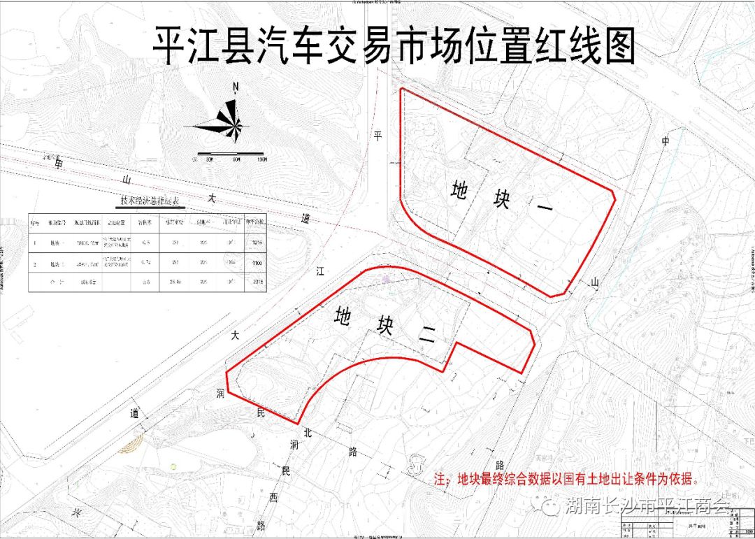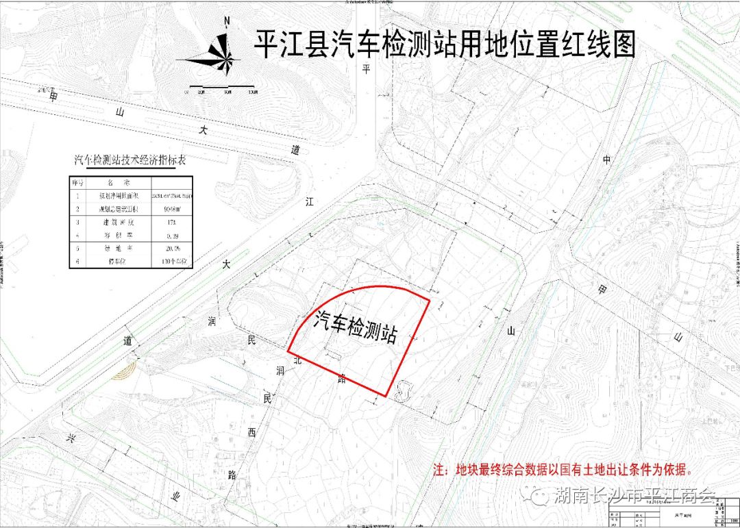 宗地二(平江县汽车交易市场项目):汽车交易市场地块,位于平江县城关镇天岳新区西南部,平江大道与甲山大道交叉口东部。商业用地,使用权面积109784.82M2,规划容积率≤0.6,建筑密度≤26.8%,绿地率≥20%,出让年限40年,拟于4月上旬上网挂牌出让。该地块规划建设平江县汽车交易市场,按主次道路为界由北往南划分为Ⅰ、Ⅱ区域,拟设立13家汽车4S店及二手车交易市场,周边配套建设车驾管理所、车辆检测站、零配件市场、汽车维修市场、集贸市场。地块紧邻通平高速连接线,交通便利、地理位置优越、功能规划齐全。宗地三(平江县汽车车辆检测站项目):车辆检测站地块,位于平江县城关镇中山路西侧,平江县汽车交易市场与车驾管理所之间。商业用地,使用权面积23054.6M2,规划容积率≤0.39,建筑密度≤17%,绿地率≥20%,出让年限40年,拟于4月上旬上网挂牌出让。该地块规划建设平江县车辆检测站,分小车检测与运管检测两个区域,设立有停车区、服务楼、待检区、检测车间、待证区、复检通道和路试区,按年检测能力2万台设计。宗地四(平江县天岳美食文化街项目):天岳美食文化街地块,位于平江县城关镇滨江南路与甲山河风光带夹角处。商业用地,使用权面积40031.4M2,规划容积率≤1.07,建筑密度≤34.8%,绿地率≥20%,出让年限40年,拟于4月上旬上网挂牌出让。该地块规划建设平江县天岳美食文化街,分东西两块,东区以平江特产及民俗文化展示为主题,西区以平江美食餐饮文化为主题,采用徽派建筑风格,整体呈“大鹏展翅”造型,建设远景目标为平江美食民俗文化窗口与休闲旅游观光胜地。