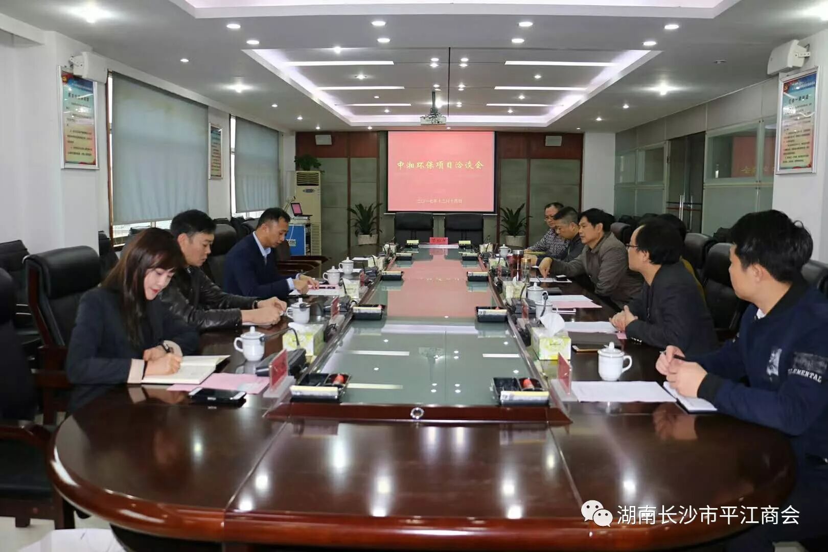 ▲中湘环保股份有限公司董事长唐奇军与园区管委会领导洽淡