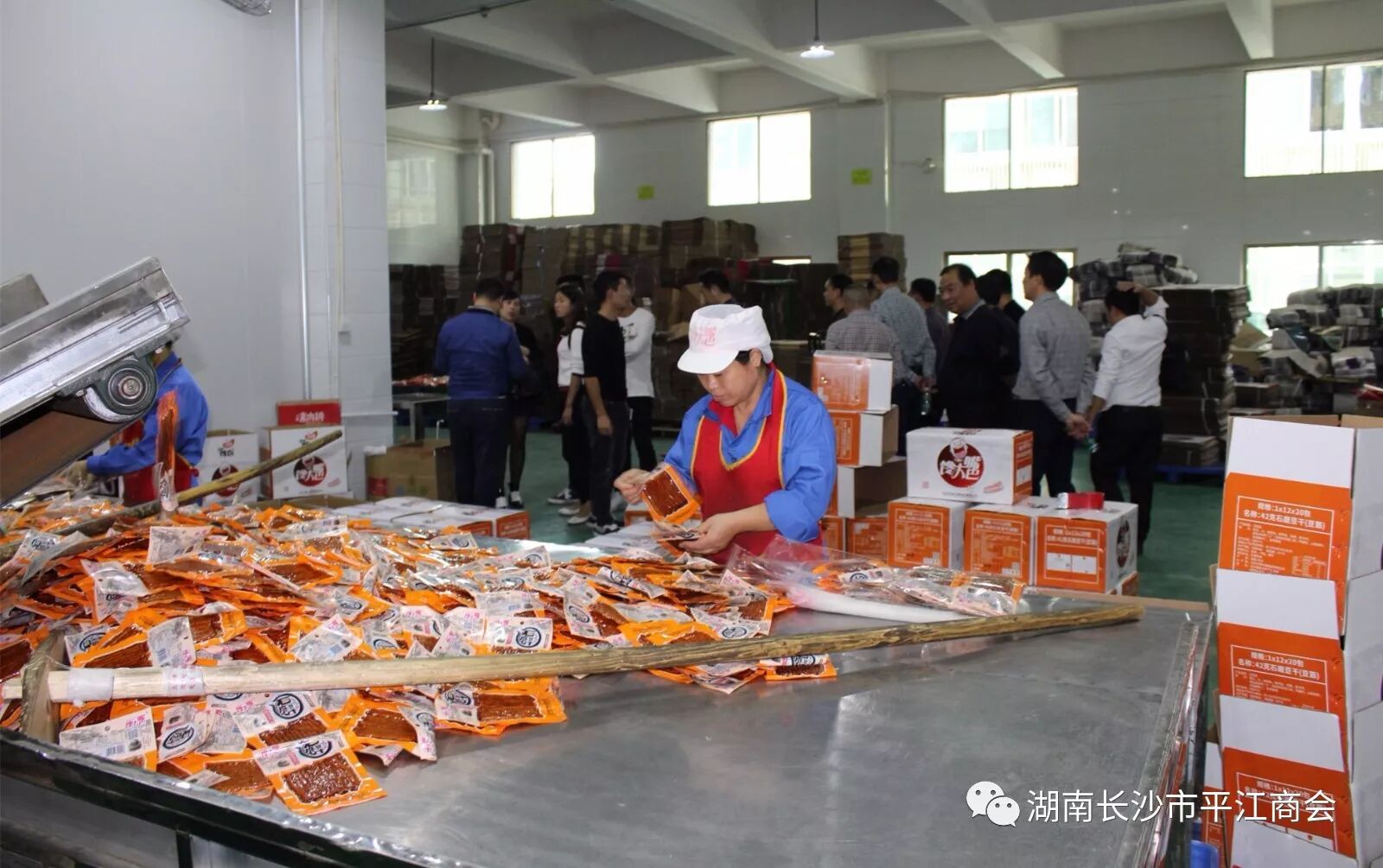 10月27日,天高云淡、风和日丽,长沙市平江商会“服务会员 携手同行”企业发展调研第十三站走访组共计30余人,在商会名誉会长谢谷生,执行会长兼秘书长孔迎春,执行会长黄荣波,副监事长殷跃涛,常务副会长喻森林、余向东、余珍珍,宣传部副部长余攀霞等商会领导的带领下,走进长沙市馋大嘴食品有限公司,商会理事、长沙馋大嘴食品有限公司董事长喻新德热情接待走访组一行。