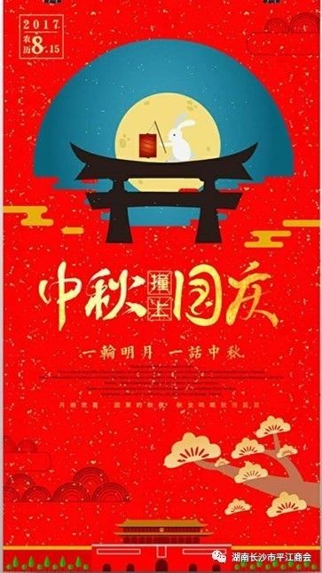 在这满载丰收喜悦的金秋时节,我们迎来了共和国六十八周年华诞和中华民族的传统佳节——中秋节。魏朝阳率商会常务领导向全体会员及你们的家人、亲朋好友表示国庆节和中秋节的双重祝贺,并向你们送去诚挚的祝福和真诚的问候!向长期以来关心和支持长沙市平江商会工作的各级领导以及社会各界朋友致以节日的问候。祝大家团团圆圆,幸福美满!