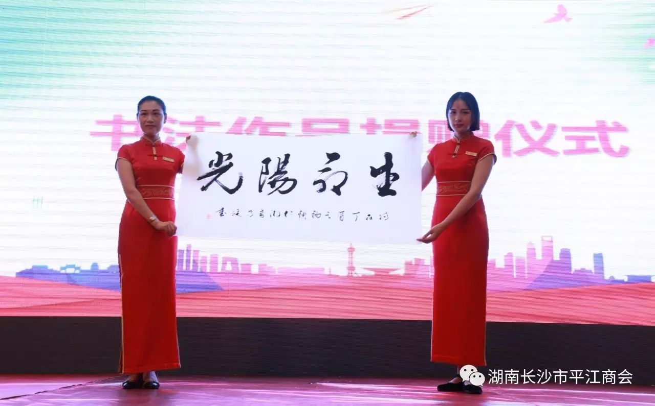 金秋送爽、丹桂飘香,捷报频传、喜临阳光。2017年9月19日早上9点30分,长沙市平江商会常务副会长单位-阳光集团与山东亚姆巴乳业有限公司的签约仪式在阳光国际大酒店三楼国际会议中心举行。与阳光集团同场签署合作协议的还有湖南家天下中老年旅游有限公司、南京金龙新能源有限公司、长沙橘子洲餐饮有限公司、长沙瑞豪华廷酒店等四家知名企业。中国老区建设促进会发展部马部长现场书赠书法作品。中国老区建设促进会执行会长石宝华少将与来自武汉、南昌、深圳、郑州、郴州等地150余名客商贵宾,共同见证了这一盛事。