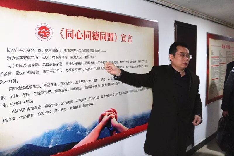 在认真听取汇报、仔细查阅商会档案和资料后,验收组一行对我会工作表示十分赞赏并给予高度评价。张明刚副主席评价说:长沙市平江商会“四好”商会创建工作领导重视,措施得力,成果明显。商会成立四年来稳健发展,工作亮点多,是我省基层商会中为数不多的优秀代表之一。至少有四大亮点值得总结,一是会员队伍建设,看重会员与商会的双向互动,去僵粉,重质量的作法有自己的独到之处;二是商会文化建设,“同心同德同盟宣言”既为会员立下了规矩,也为商会既定了发展目标,确定了商会的核心文化理念和价值观。宣言的制定、会歌的制作将商会文化提升到了一个新的高度。平江商会从无到有,从小到大,一路走来所取得的成绩,商会文化的作用功不可没;三是平商大厦建设,由商会提供平台,用市场模式运作,明确投资建设者、商会和会员三方利益,此作为强化商会造血功能、扩大会员利益交汇点、构建商会利益共同体的载体的作法值得肯定。项目公司已在注册,1亿元股金已认定,1000万资金已入帐,与土地出让方已签署协议,筹建工作一步一脚印扎实推进,步入实操阶段,此举开创了同类商会之先河;四是社会公益慈善,特别是扶智助学、扶贫助困,关注特殊群体很有特点和特色,成果明显。在给予工作点评的同时,张明刚副主席就平商大厦项目建设应如何规避法律风险、如何防止会员纠纷、如何确保项目落地提出非常宝贵的意见和建议,为我会平商大厦建设项目稳健推进奉献了锦囊。