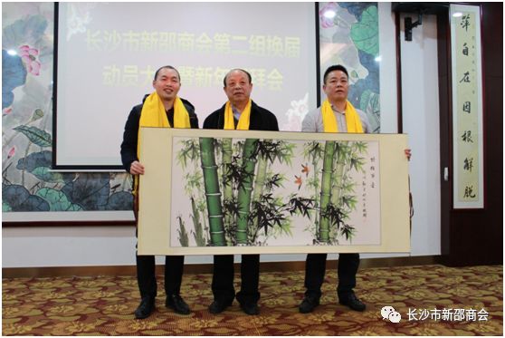 2019年1月10日下午,根据长沙市新邵商会会长、换届领导小组组长刘祖长及秘书长、换届工作小组组长邓贤民的安排,在商会执行会长、二组顾问刘冯和商会常务副会长兼二组组长刘明的精心组织下,在长沙市天心区书院南路423号乾城大厦二楼金百临投资咨询有限公司会议室召开了第二组换届动员大会暨新年团拜会,参加会议的人员有商会顾问原湖南省政法委石民生副书记,著名艺术家刘省安老师以及商会执行会长雷启求、会长助理颜道成、常务副会长兼常务副秘书长屈意民、副会长兼一组组长李忠要、商会副监事长张正明及二组组员、秘书处工作人员共计六十余人,参加了此次会议。