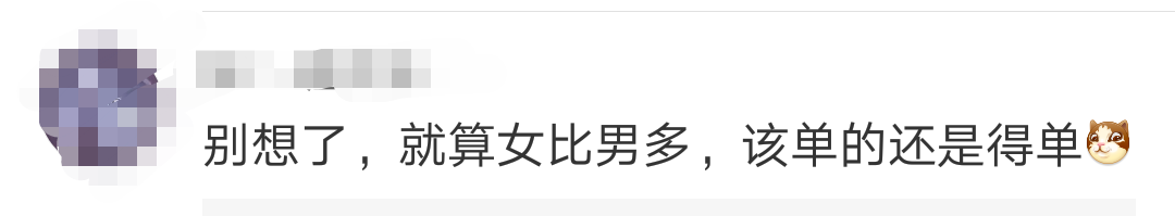 网友总结说:是否单身和人数没关系,无论男比女多,还是女比男多,该单的人还是得单!